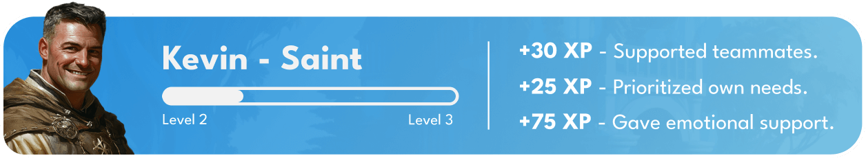 Teams build trust and develop skills, earning XP and rewards that recognize both individual and team growth.