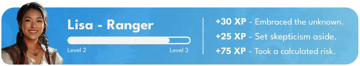 Insights shape new quests. Teams build worlds they care about. Strengths become second-nature. New hires belong instantly.